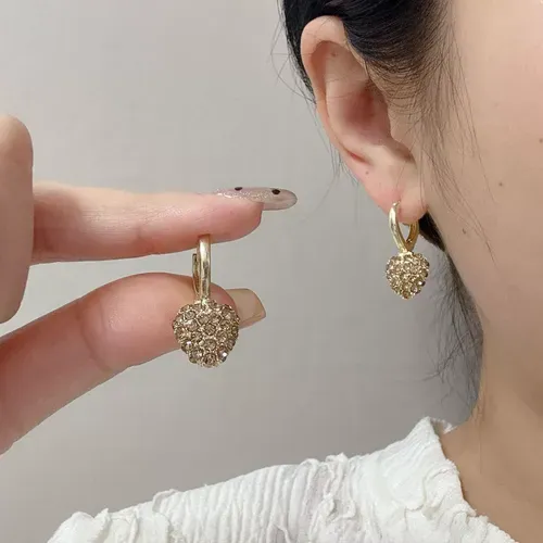 New Design Luxury Women Jewelry Love Heart Ear Buckle Zircon Initial Brass Stud Earrings
