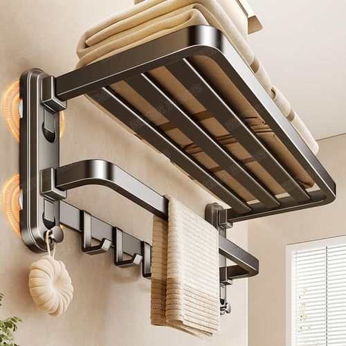Gun Grey Aluminum Alloy Bathroom No-Drill Suction Cup Towel Rack & Bath Towel Holder